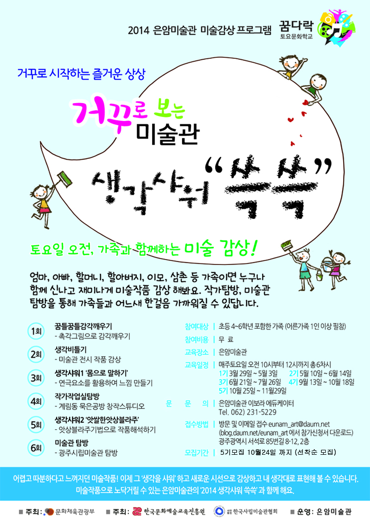 2014²Þ´Ù¶ôÅä¿ä¹®ÈÇб³ °Å²Ù·Î º¸´Â ¹Ì¼ú°ü '»ý°¢»þ¿ö ¾³¾³' 5±â Âü¿©ÀÚ¸¦ ¸ðÁýÇÕ´Ï´Ù.