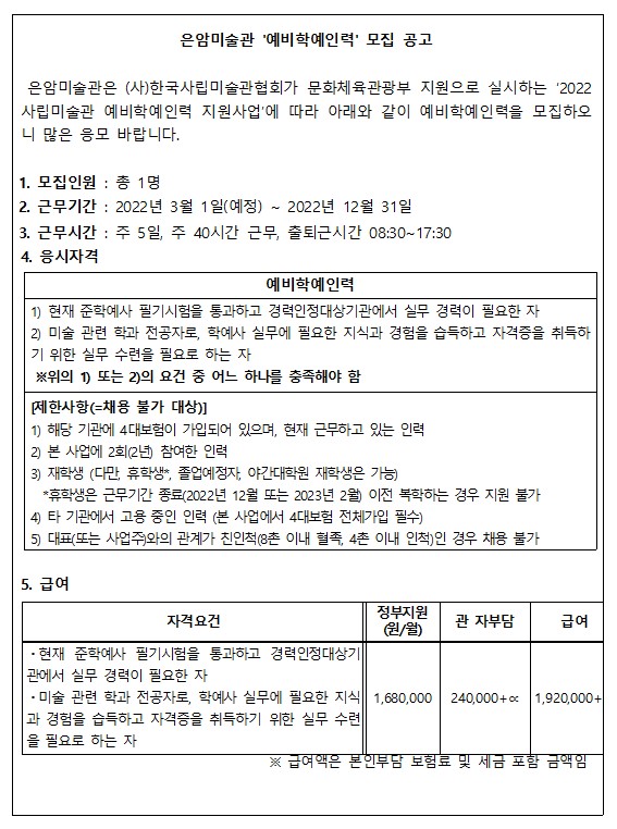 (ä¿ë¿Ï·á)2022 Àº¾Ï¹Ì¼ú°ü '¿¹ºñÇп¹ÀηÂ' ¸ðÁý °ø°í